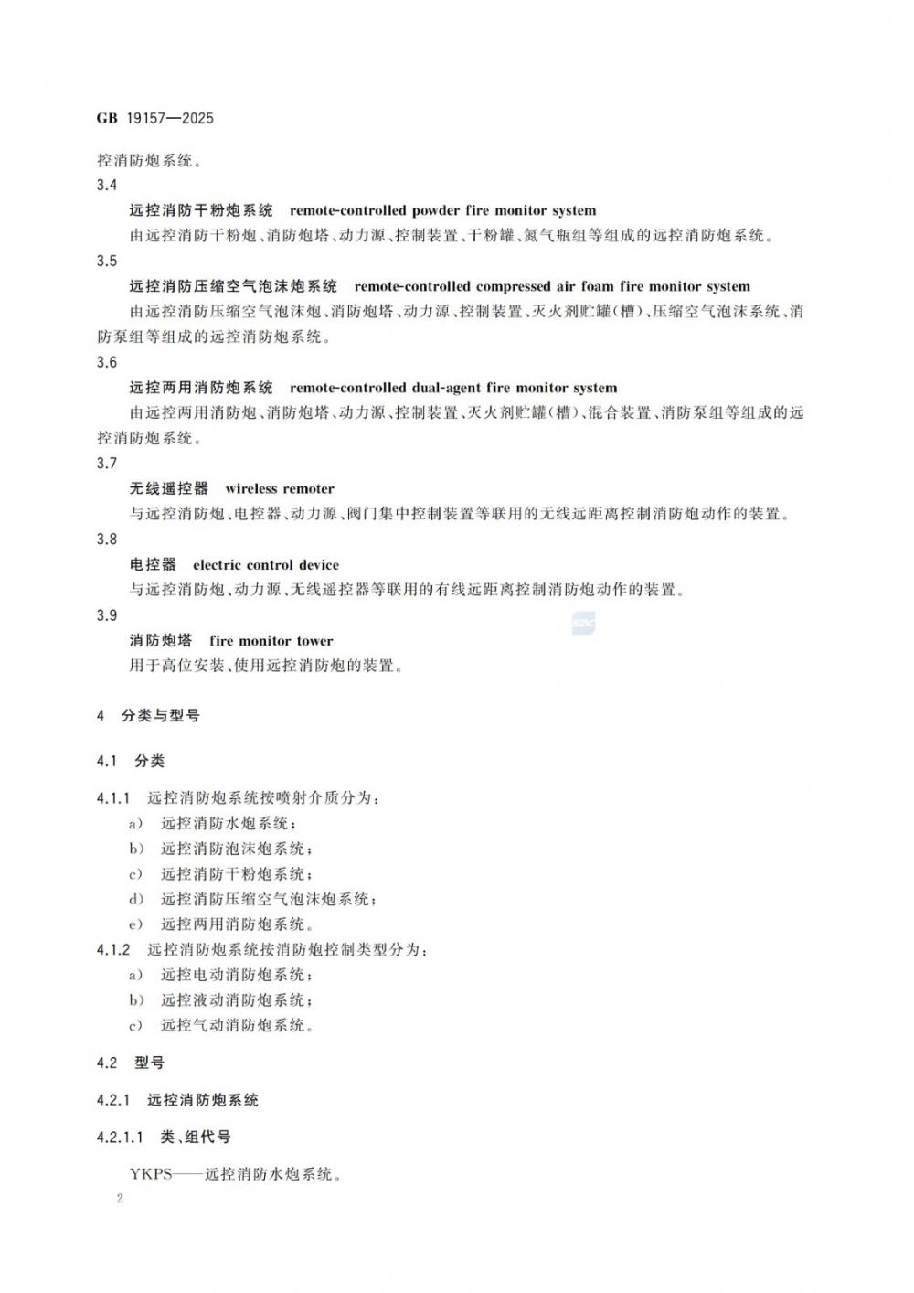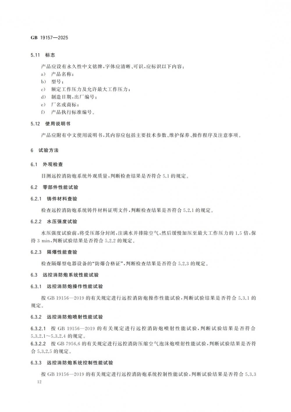 GB 19157-2025 《遠(yuǎn)控消防炮系統(tǒng)通用技術(shù)條件》免費